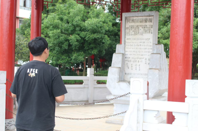 在“同心桥”民族团结调研活动中,师生们首先来到民族团结誓词碑前。看到誓词碑上斑驳的誓词,学生们驻足凝望,深切体会到老一辈无产阶级革命家与各族群众同心同德、团结奋斗的革命精神。活动推进中,一行人来到县城中央的茶园广场,认真学习了习近平总书记给普洱民族团结誓词碑盟誓代表后代的回信,进一步坚定了守护民族团结的信念与信心。活动接近尾声,学生们走进群众,在当地民族街开展民族文化调查与访谈。期间,他们深入采访了两位老人——分别来自回族和哈尼族。老人用带着乡音、并不标准的普通话,向学生们讲述自己的经历、民族的故事,并由衷称赞如今民族团结的和睦生活。