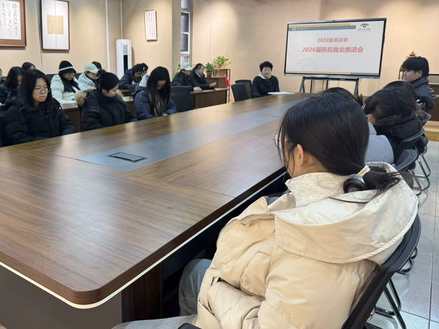 为切实帮助 2026 届毕业生明晰就业态势、抢抓求职关键窗口期,主动应对当前就业领域结构性矛盾与压力,情色小说 紧抓考研初试结束的重要节点,于12月23-24日,开展2026届毕业生研后就业推进班会。学院党委副书记、副院长孙研红,团委书记孔德滕及毕业年级辅导员分批次召开班会。