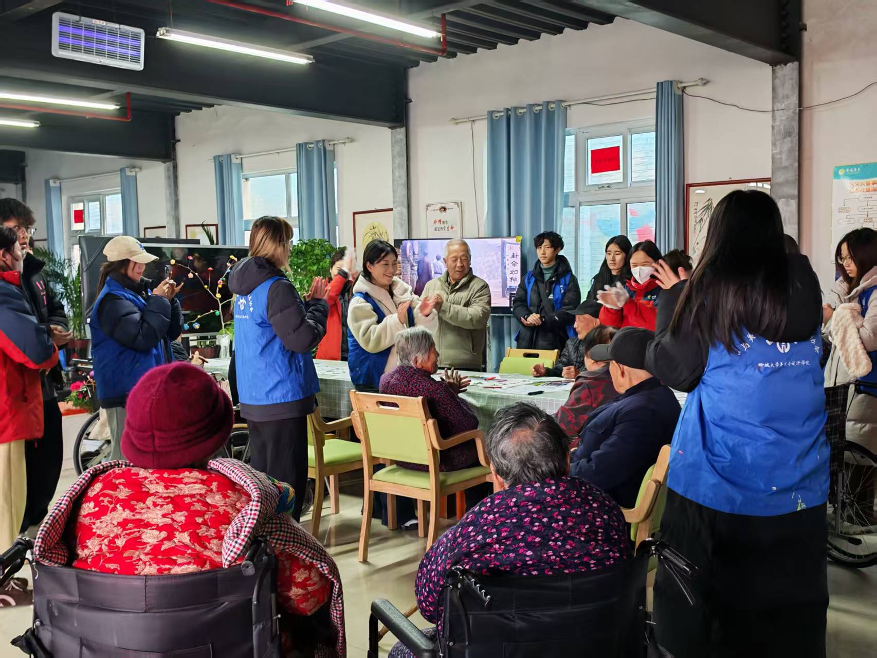 活动伊始,主持人做开场致词,清晰阐述本次活动的主题,随后解释了何为一氧化碳,怎样有效预防,治疗一氧化碳中毒,最后各位志愿者通过展示书画作品,陪伴老人做手工,与老人合唱等方式,以幽默风趣又通俗易懂的方式教会老人们如何有效预防一氧化碳中毒,安全过冬。老人们积极参与绘画书写活动,还主动与志愿者们倾情歌唱,掌声热烈歌声绕梁,场面氛围温馨融洽。活动尾声,工作者为志愿者与老人们留下了珍贵合影,定格了这次充满温度与意义的志愿活动。